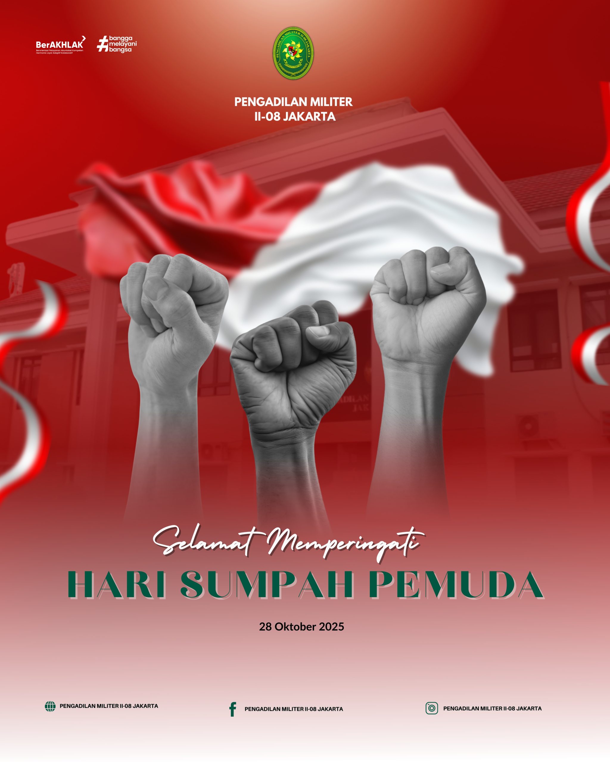 Bertempat di ruang sidang utama Pengadilan Militer II-08 Jakarta, dilaksanakan Upacara Memperingati Hari Sumpah Pemuda, dengan Inspektur Upacara Kepala Pengadilan Militer Tinggi II Jakarta, Laksma TNI Tuty Kiptiani. S.H., M.H.